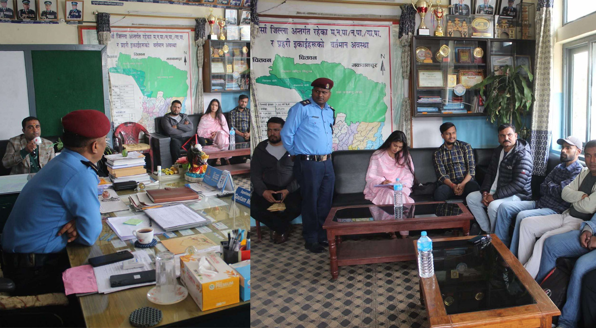 अन्तरक्रिया कार्यक्रममा पर्साका प्रहरी प्रमुख गौतम मिश्रले पुनःस्थापना केन्द्रका अवस्था एवम् सेवा साधनको बारेमा जानकारी लिनु भएको थियो ।पर्सा जिल्लामा रहेका पुर्नस्पाना केन्द्रका संचालक जानकारी लिदै पर्सा प्रहरीका प्रमुख प्रहरी उपरिक्षक मिश्रले पुनःस्थापना केन्द्रहरुमा सबैखाले सावधानी अपनाएर सेवा प्रवाह गर्न निर्देशन दिनु भयो ।