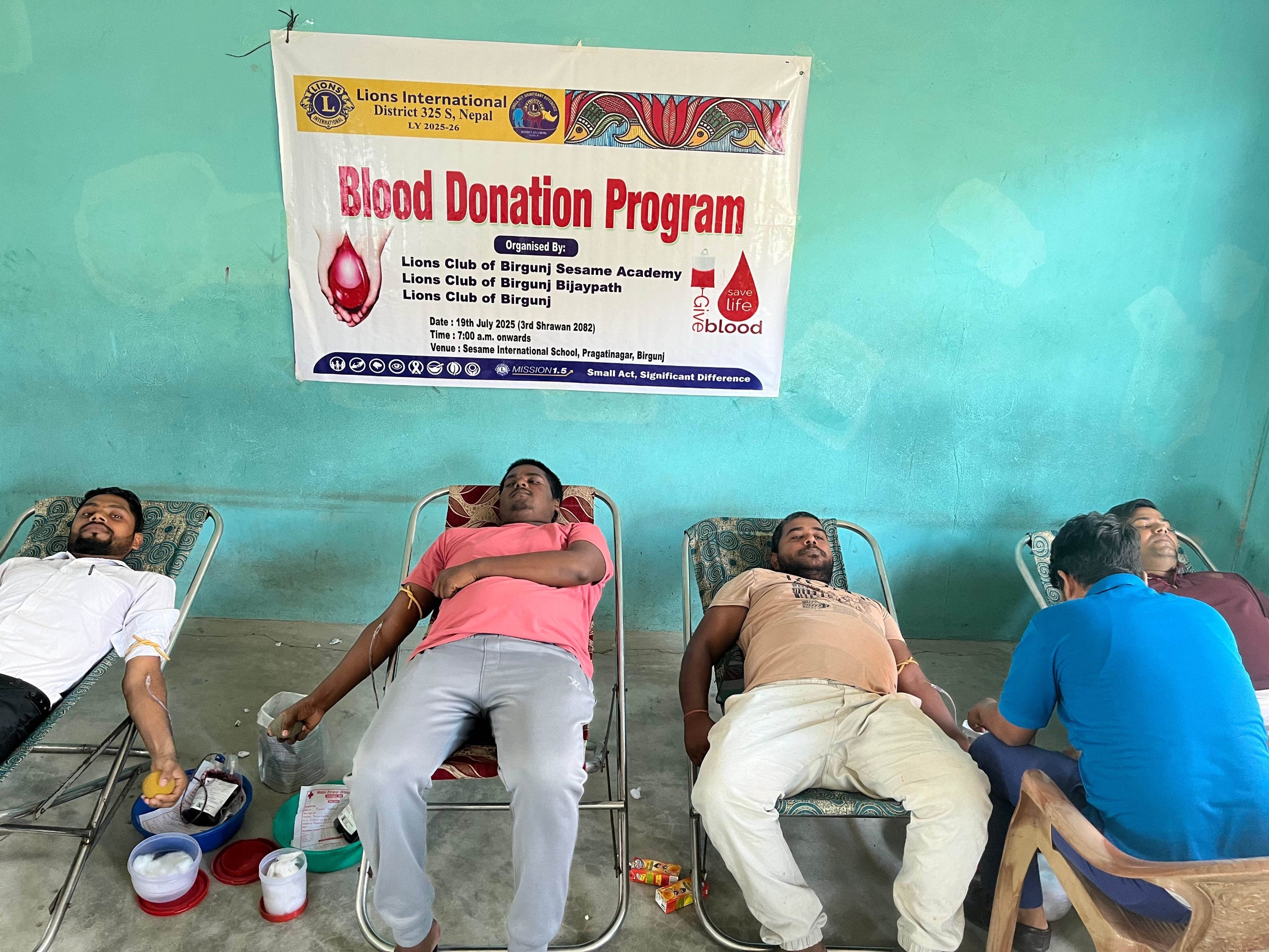 “रक्तदानः जीवनदान” भन्ने नाराका साथ सञ्चालित रक्तदान कार्यक्रममा नेपाल रेडक्रस सोसाइटी पर्साका सभापति बृजकिशोर पटेल, लायन्स क्लबका एरिया को–चिफ लायन विनित जैसवाल, डिष्ट्रिक्ट डेपुटी चिफ लायन विजय कुशवाहा, भोलेन्टियर टिम समुहका राजन श्रीवास्तव, विक्की सर्राफ, एनजिओसिसि पर्साका अध्यक्ष इब्राहिम देवान, मानव सेवा आश्रम वीरगञ्जका संयोजक देवेश गुप्ता, नेपाल रेडक्रस सोसाइटी, पर्सा शाखाका प्राविधिक धिरेन्द्र झा, नमित चौरसिया, श्रीराम यादव, स्थानीय युवा, समाजसेवी, अभिभावक, शिक्षक, विद्यार्थी तथा लायन्स क्लबका सदस्यहरूको उल्लेखनीय सहभागिता रहेको थियो ।