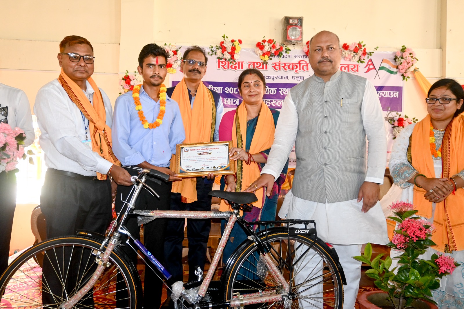 शिक्षा तथा संस्कृति मन्त्रालयको आयोजना र भारतीय महावाणिज्य दूतावास वीरगञ्जको समन्वयमा मंगलबार सम्पन्न कार्यक्रममा एसईई परीक्षा–२०८१ मा उत्कृष्ट नतिजा ल्याउने विद्यार्थीलाई साइकल वितरण गरिएको हो।